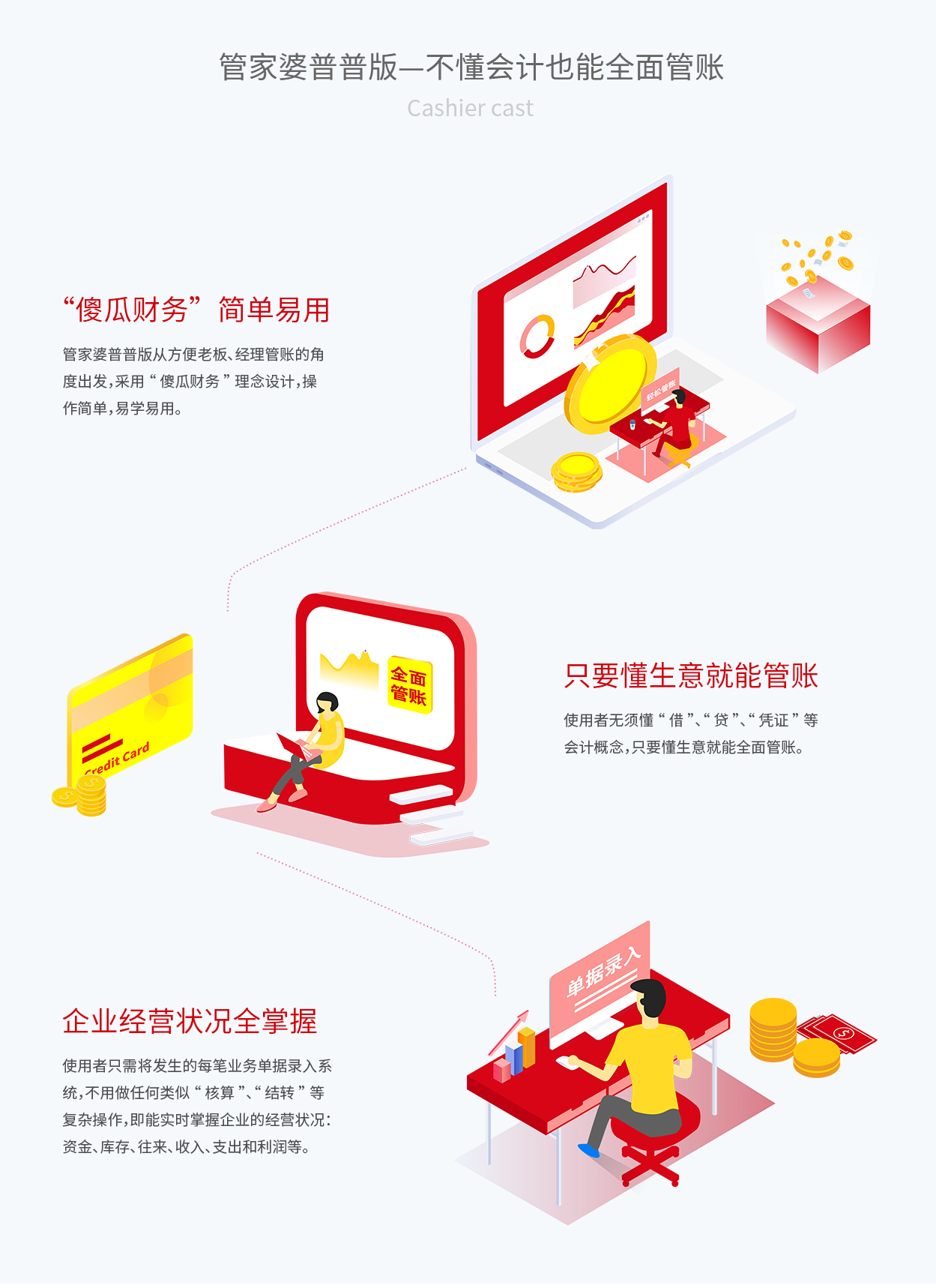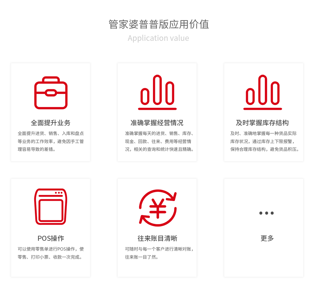 管家婆辉煌普普版 2021/06/28 产品中心 辉煌系列 3734 0 入门级进销存管理软件 管家婆辉煌系列软件 管家婆辉煌普普版是一款深受广大中小企业欢迎的进销存、财务管理一体化软件。该软件充分考虑了国内中小企业规模不大、人手不足的实际情况,采用独特的“傻瓜财务”理念设计,操作简单、人人易用,只要懂生意就能全面管账。 抠细账 了解每一件货、每一分钱的来龙去脉。 活应用 单据、报表、界面、菜单自定义。 易上手 流程简洁明了,操作界面简单易用。 大胜算 毛利、库存,各项数据随时掌握,轻松决策。